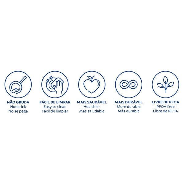 Produzida em alumínio com espessura de 1,6 milímetros e revestimento interno e externo em antiaderente Starflon Max, características que proporcionam um cozimento rápido e uniforme dos alimentos, evitam que eles grudem em sua superfície, a tornam fácil de limpar, mais durável e não prejudicial à saúde.
